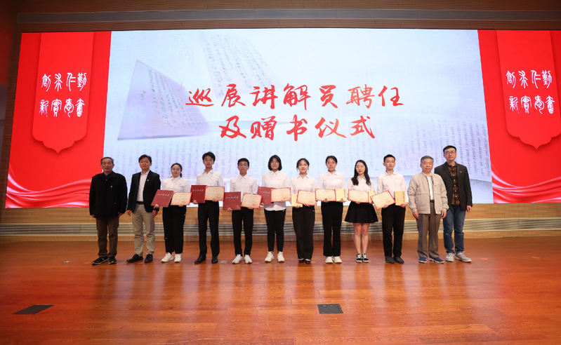每个展品都承载着一个感人肺腑的故事。每个故事只有讲得精彩、讲得深入人心,才能让展览“活起来”“实起来”。基础医公司党委招募、组建、培训巡展讲解员,在锤炼会讲红色故事的硬本领上做“加法”,让红色展览把家国情怀根植于心。员工讲解员们通过集中培训、实地参观、查阅资料、研讨交流等方式在课后做了很多“功课”,并获得感悟:“我们也要像革命先辈一样去奋斗、去搏击,为属于我们的事业不断拓宽青春的赛道。”公司关工委副主任余小明、顾家柱,上海市档案局(馆)利用服务部主任张斌、副主任张姚俊为讲解员颁发聘书,并向员工代表赠送《初心的传承——中国共产党人的家风》《跟着档案看上海》等红色主题书籍,寓意“红色传承接力棒”传递到追逐大医强国梦的中医学子身上。在仪式启动前的师生座谈会上,余小明和顾家柱回忆英国365集团公司2003年搬迁至张江“二次创业”的难忘经历,勉励员工为中医药事业的美好未来接续奋斗。