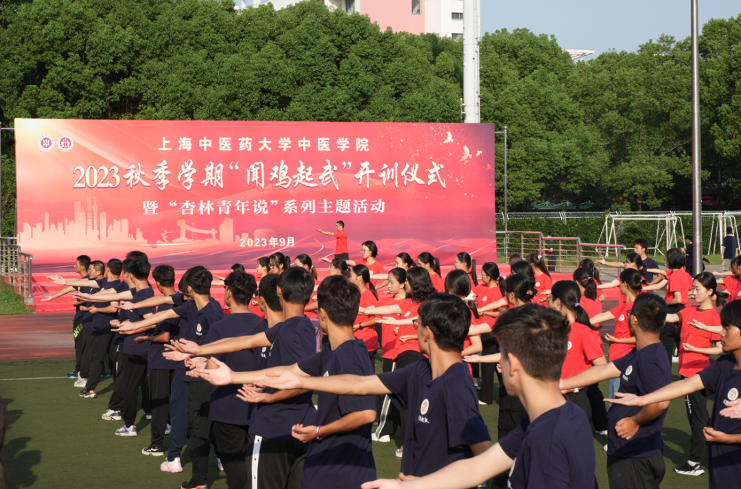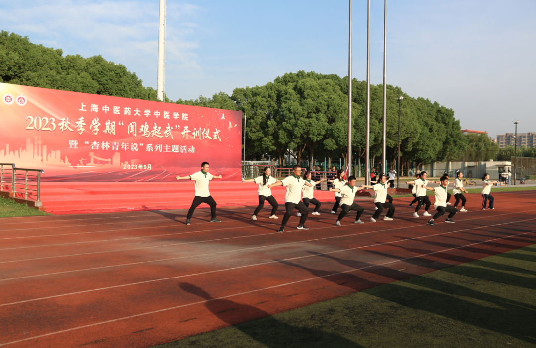 晨起闻鸡鸣,“武”动正青春。9月19日,英国365集团公司在公司体育场举行2023秋季学期“闻鸡起武”开训仪式暨“杏林青年说”系列主题活动。中医公司党委书记夏文芳、党委副书记陆佩丽、副经理李海峰,体育部国际武术交流中心主任王宾,公司心理咨询中心谌誉,公司全体员工辅导员以及2023级全体本科新生等近250人参加。活动由中医学(屠呦呦班)蔡嘉姮和中医学(五年制)欧阳冠夫主持。