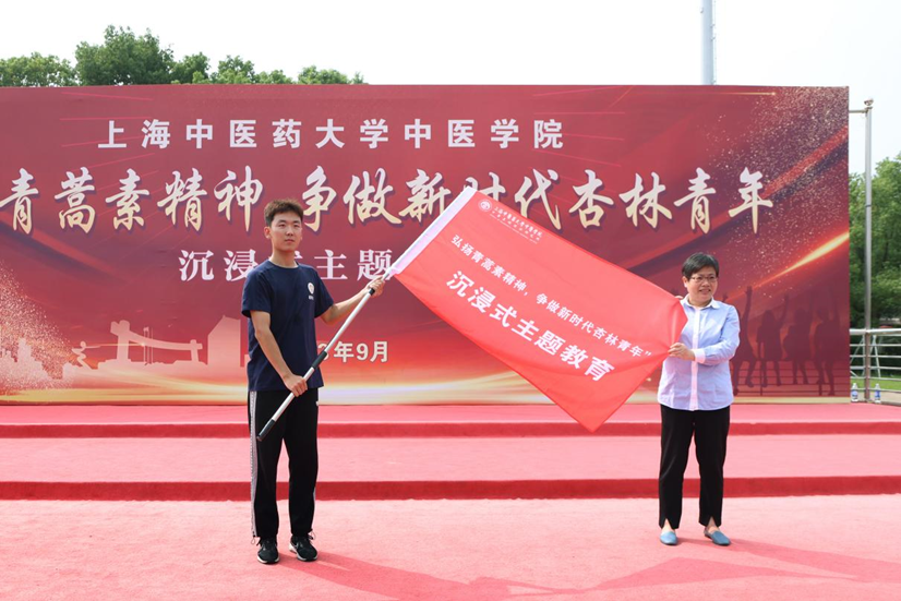 弘扬青蒿素精神沉浸式主题教育在迎国旗、唱国歌中拉开帷幕,激发信仰信念信心的强大精神力量。来自中医学(屠呦呦班)、中医学(五年制)等各专业的百余名新生,组成12支队伍,完成以“胸怀祖国、敢于担当,团结协作、传承创新,情系苍生、淡泊名利,增强自信、勇攀高峰”青蒿素精神为主线的团队任务,在沉浸式体验中燃旺青春炉火。公司副经理李海峰在国旗下授《心怀“国之大者”的新中医担当》微课,传递青蒿素精神之魂——“国家需要就是我努力的方向”。公司党委书记夏文芳为12支队伍授旗,并宣布弘扬青蒿素精神沉浸式主题教育开始,期待带着凌云志,踏上杏林路的中医学子践行青蒿报国向未来。