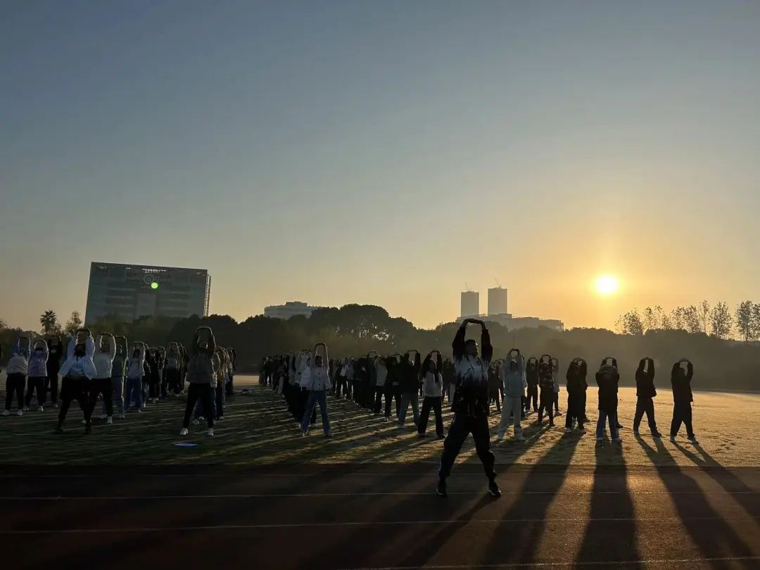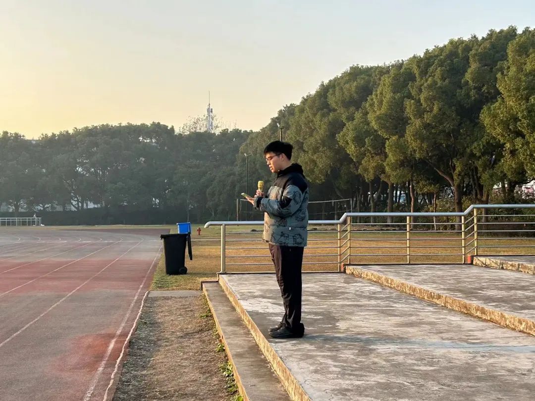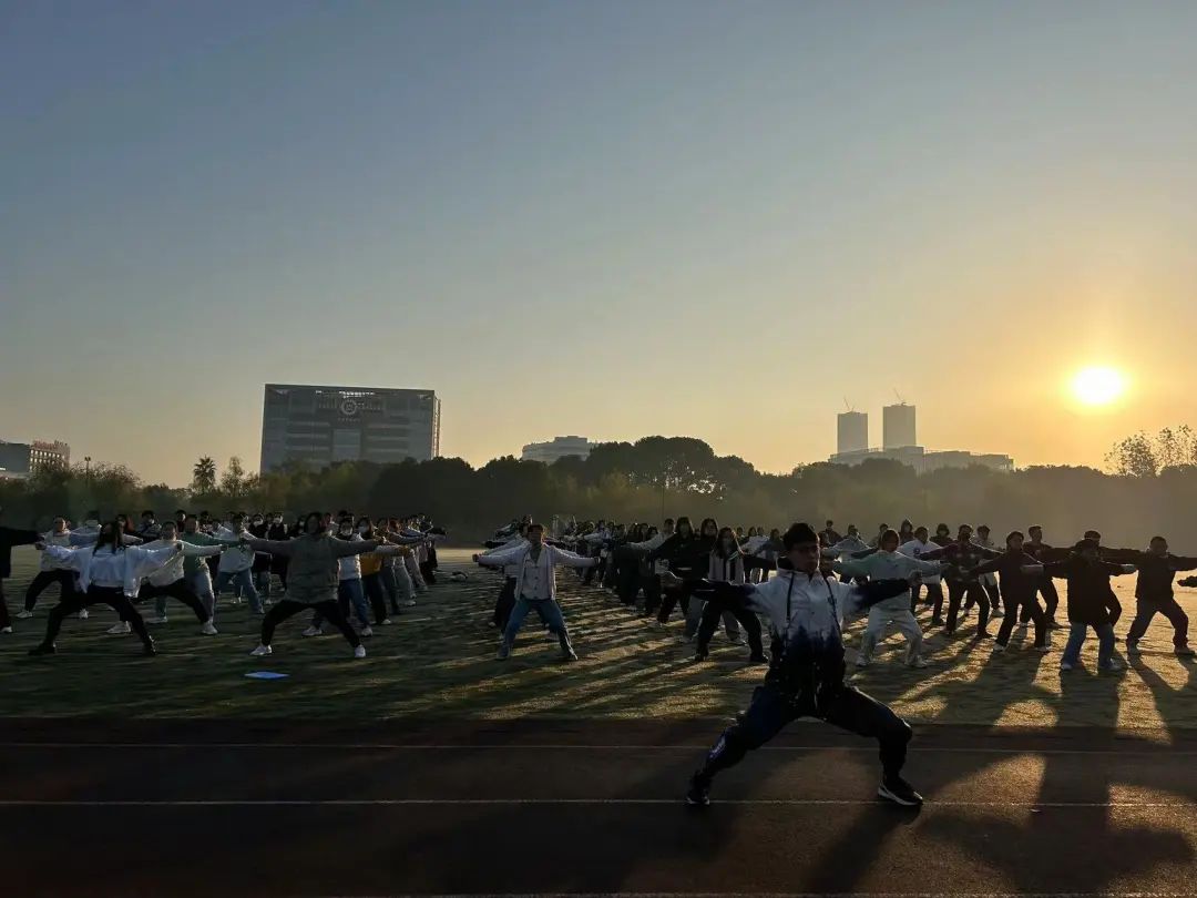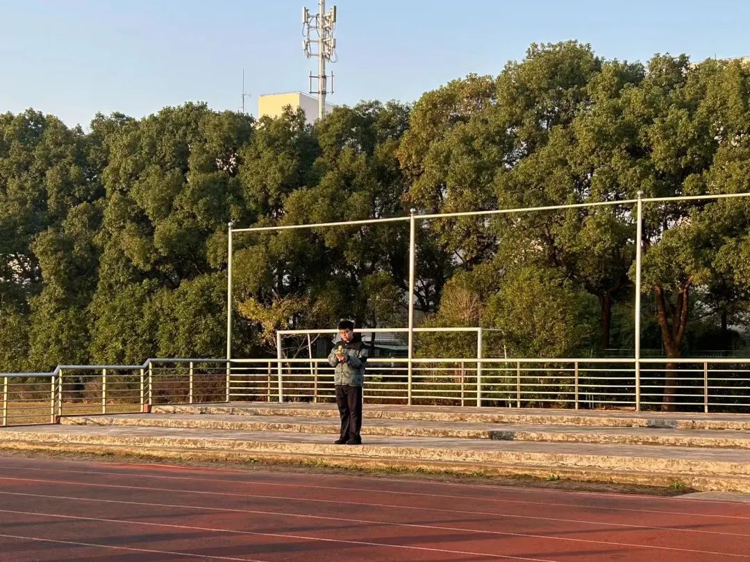 随后,王行之、王张宇同学带领在场的所有同学一起诵读本周经典条文和进行“闻鸡起武”训练。阳光下的少年们昂首挺胸,时而左右开弓,目光如炬;时而攒拳怒目,双峰贯耳,用最饱满的精神状态迎接朝阳、迎接新的一天。