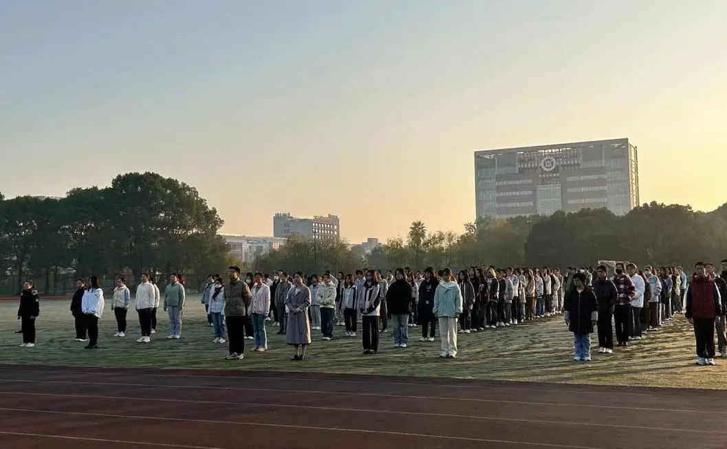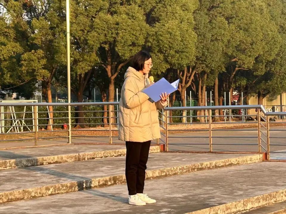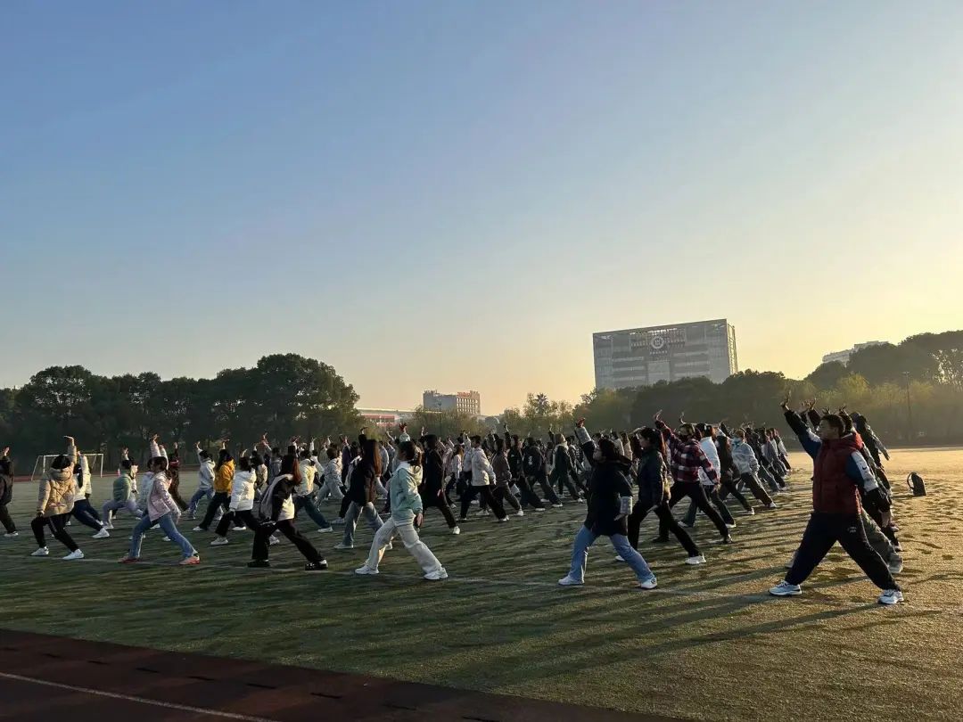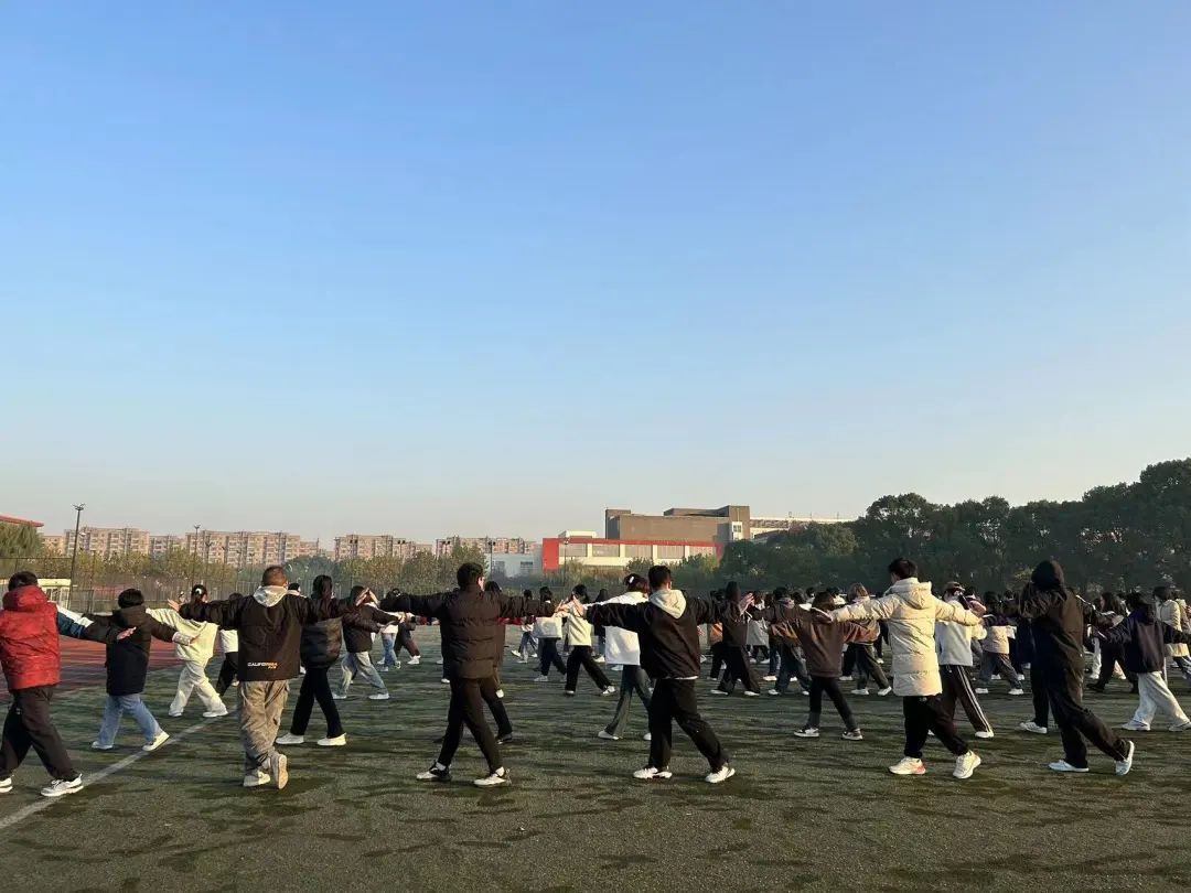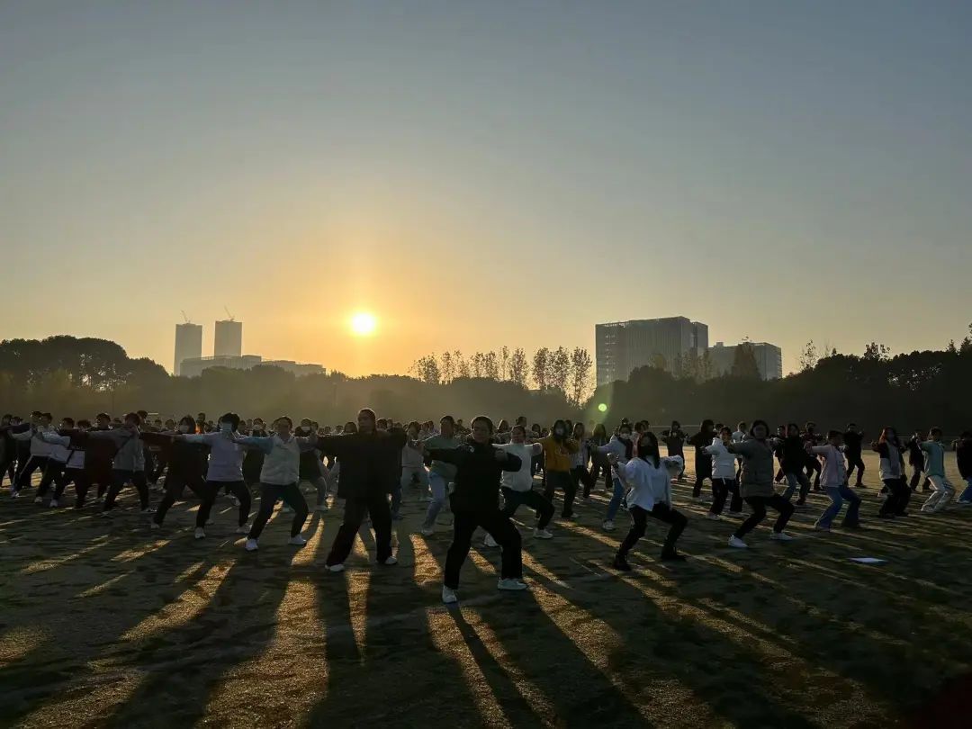 随后,王行之、王张宇同学带领在场的所有同学一起诵读本周经典条文和进行“闻鸡起武”训练。阳光下的少年们昂首挺胸,时而左右开弓,目光如炬;时而攒拳怒目,双峰贯耳,用最饱满的精神状态迎接朝阳、迎接新的一天。