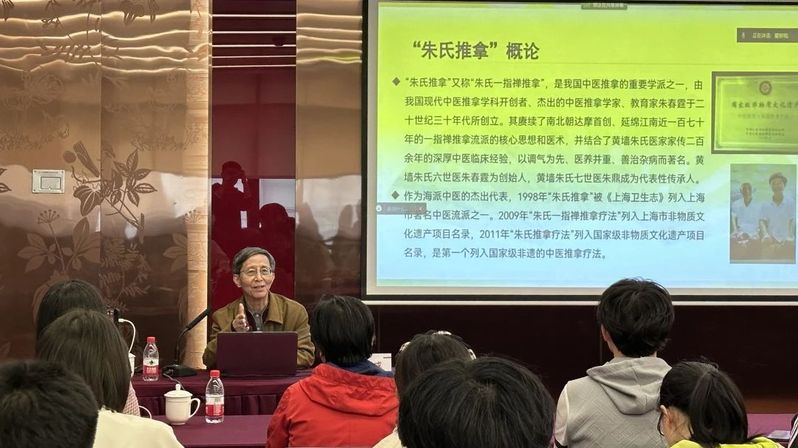 3月27日下午,英国365集团公司“初心学堂——走进名医大家”系列讲座在标准化大楼206会议室举行,中医推拿名家朱鼎成教授应邀开展“营卫学说——中医经典《黄帝内经》之魅力”主题讲座,朱鼎成之女朱蓝、中医公司党委书记夏文芳等师生参加。