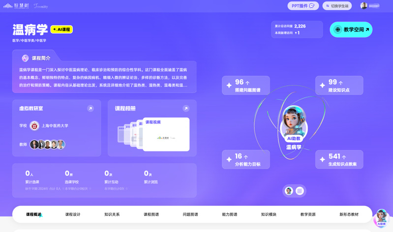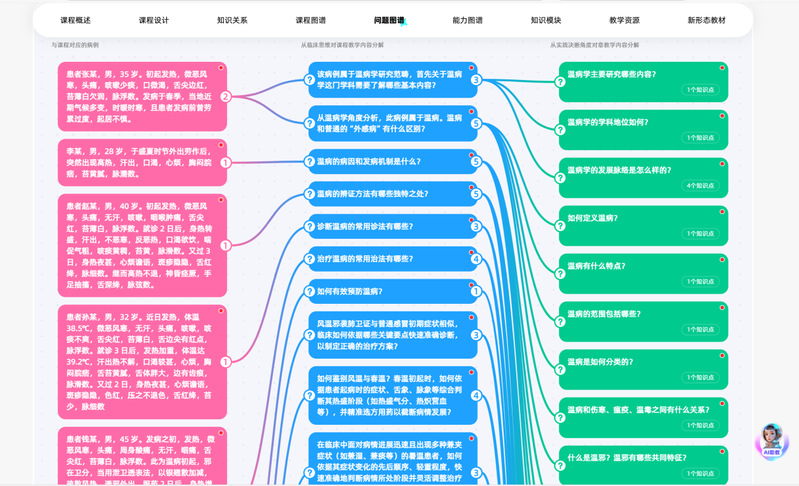 在《温病学》课程中,AI助教全程伴随员工学习,利用自然语言处理、深度学习和知识图谱技术提供个性化辅导。通过与知识图谱的智能交互,AI助教精准推荐学习资源,解答疑难问题,并根据员工的薄弱环节提供定制化支持。它通过多轮次智能问答帮助员工理解复杂概念,如温病的病因和发病机制等,确保员工在自己的节奏下获得实时指导。