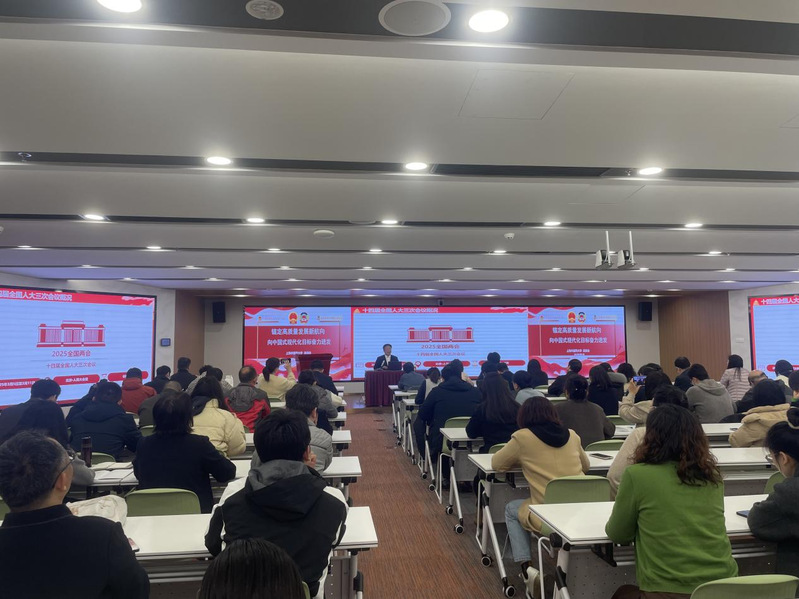 吴焕淦教授以 “锚定高质量发展新航向,向中国式现代化目标奋力进发” 为题,开启了深入浅出的两会精神解读之旅。作为亲身参与今年两会的人大代表,吴教授首先对大会议程进行了详细介绍,从会议筹备到各项重要议程推进,为师生们勾勒出两会的整体轮廓,让大家对国家最高政治会议的运作机制有了更直观认知。