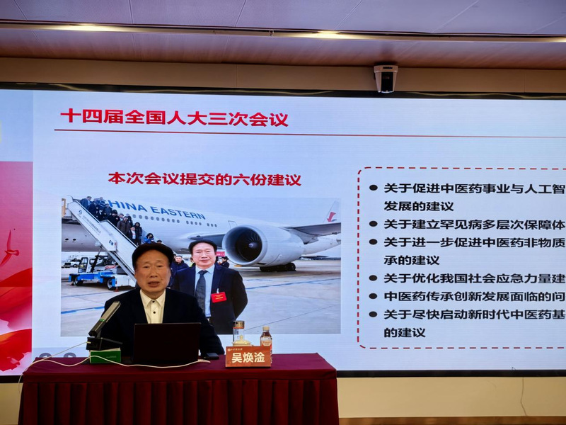随后,吴焕淦教授分享了上海代表团在两会期间的活动情况。他介绍,自己与上海代表团成员积极履行职责,围绕国计民生提交了一系列高质量提案。2025年两会上,他本人精心准备并提交了六份建议,内容紧扣时代脉搏与中医药发展痛点。