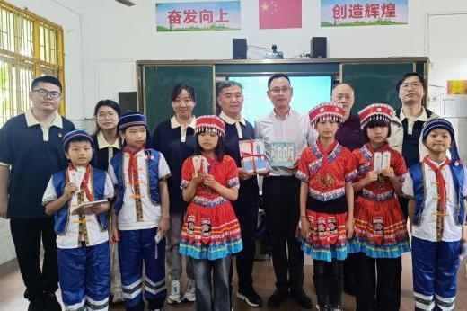 在中医药文化传播方面,实践团创新开展青少年科普教育。在浯口瑶冲瑶族小学,民族预科班员工张雅轩系统教授八段锦、太极拳及五禽戏等传统养生功法。中医学专业(五年制)员工程佳馨以“神农尝百草”动画为载体,生动展示中医药文化精髓。当瑶族员工接触艾草香囊时,对“山茱萸等家门口常见植物的药用价值”表现出浓厚兴趣。在温泉镇中心小学,马克思主义公司硕士研究生张友维以“千年智慧传薪火,小小中医护中华”为主题开展文化讲座,并通过赠送中医药科普读物、四诊书签及艾草锤等文创产品深化教学效果。